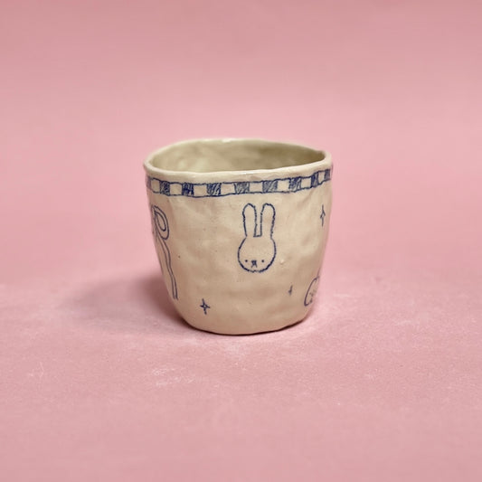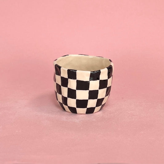 Sold outBlue Scribble Checkerboard Pinch Mug