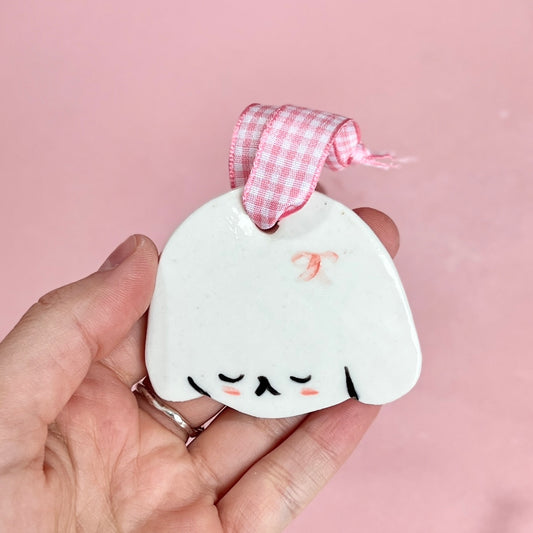 Sold outPuppy Ornament Pink Gingham Ribbon