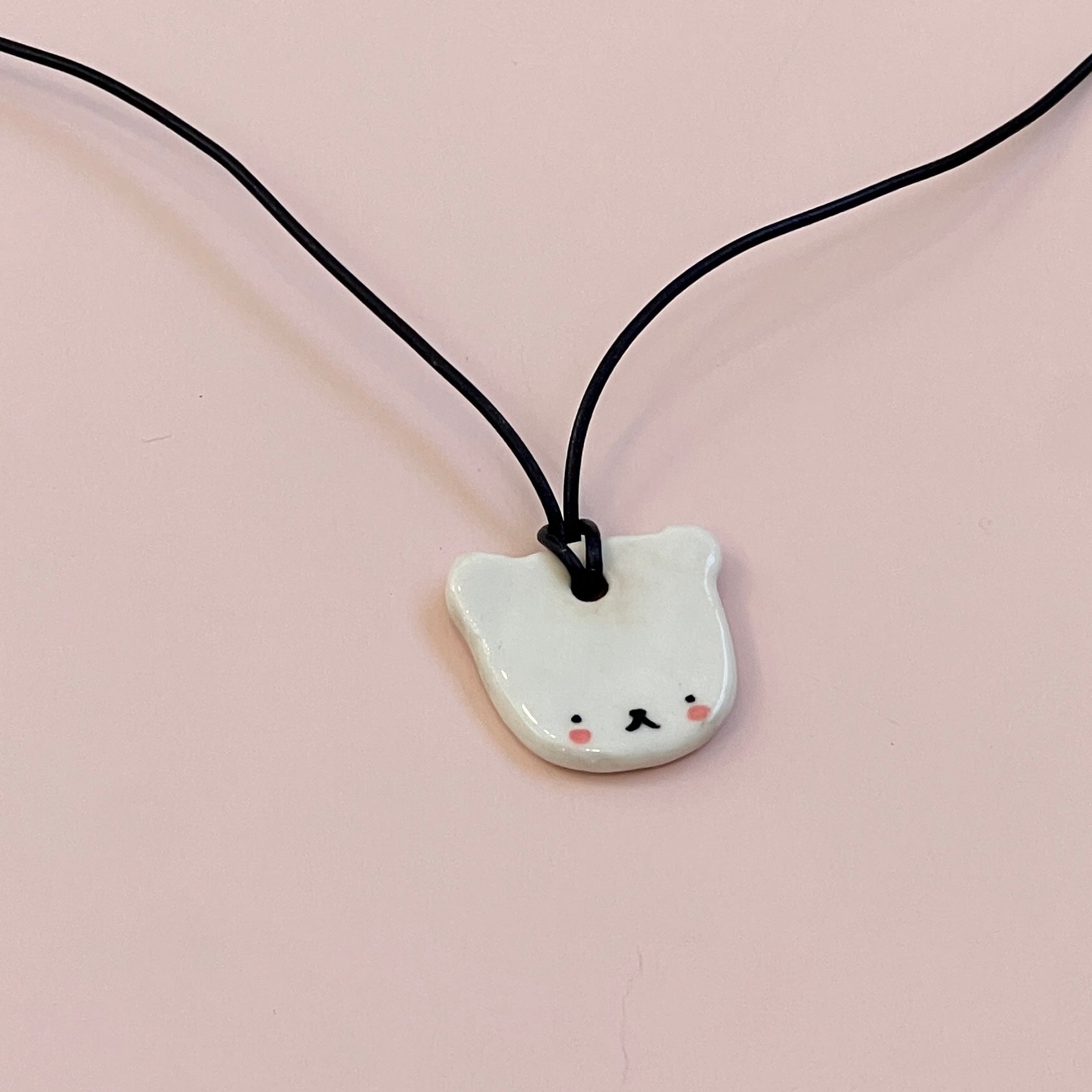 Handmade porcelain ceramic charm strung on a leather cord - tie it in a bow or loop it around a few times for something different!