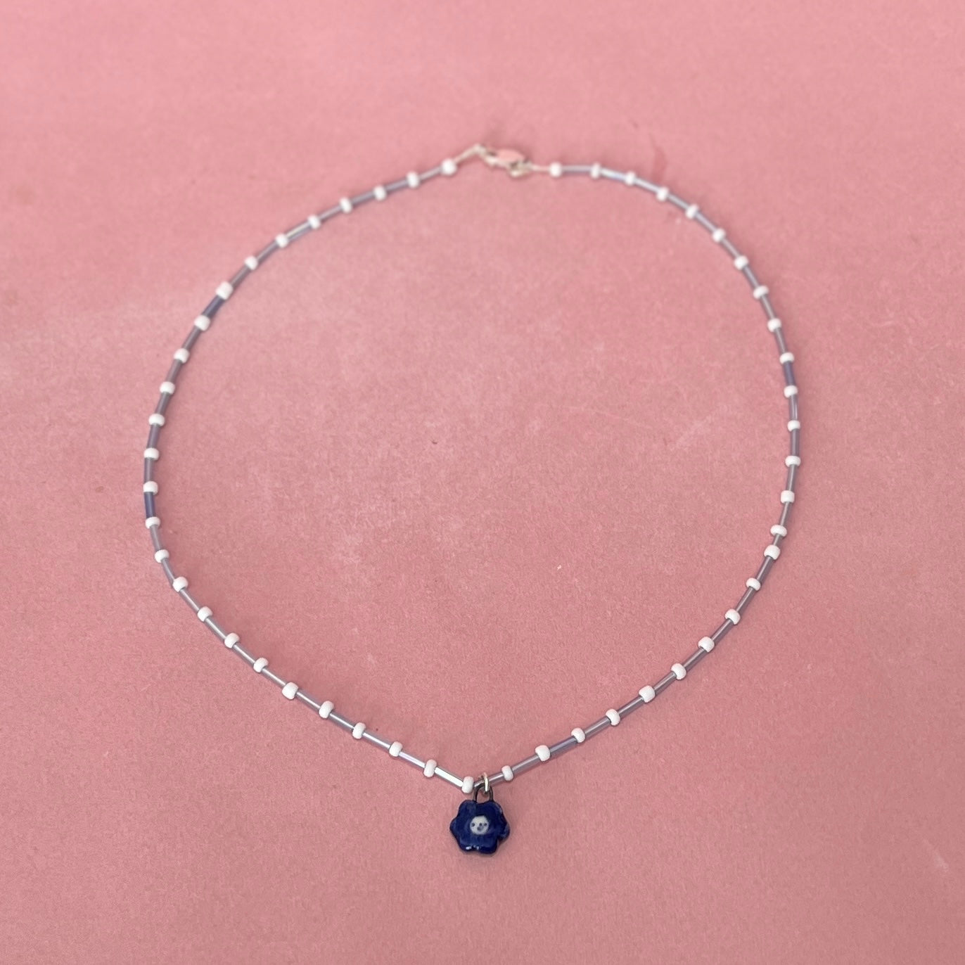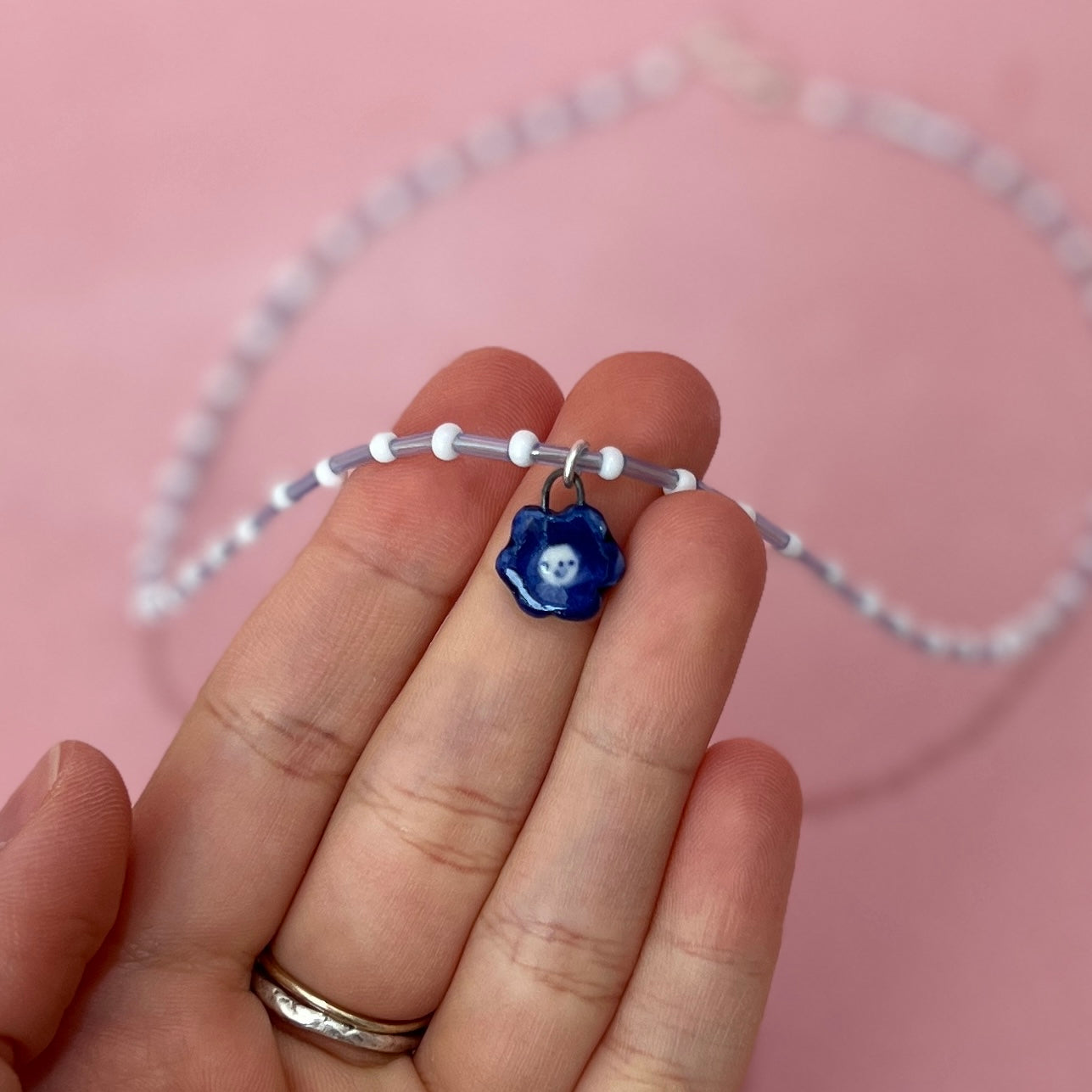 Handmade and hand painted porcelain pendant fired on nichrome wire