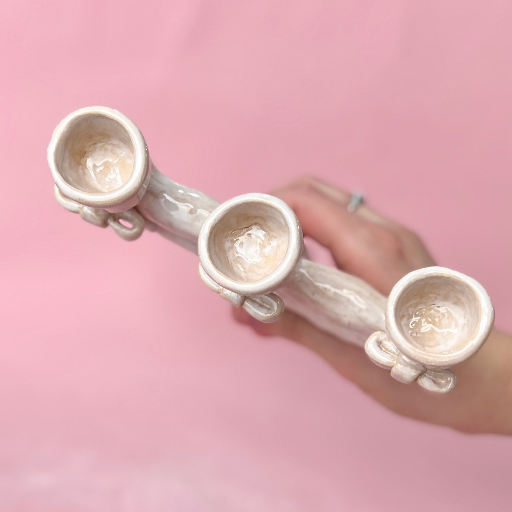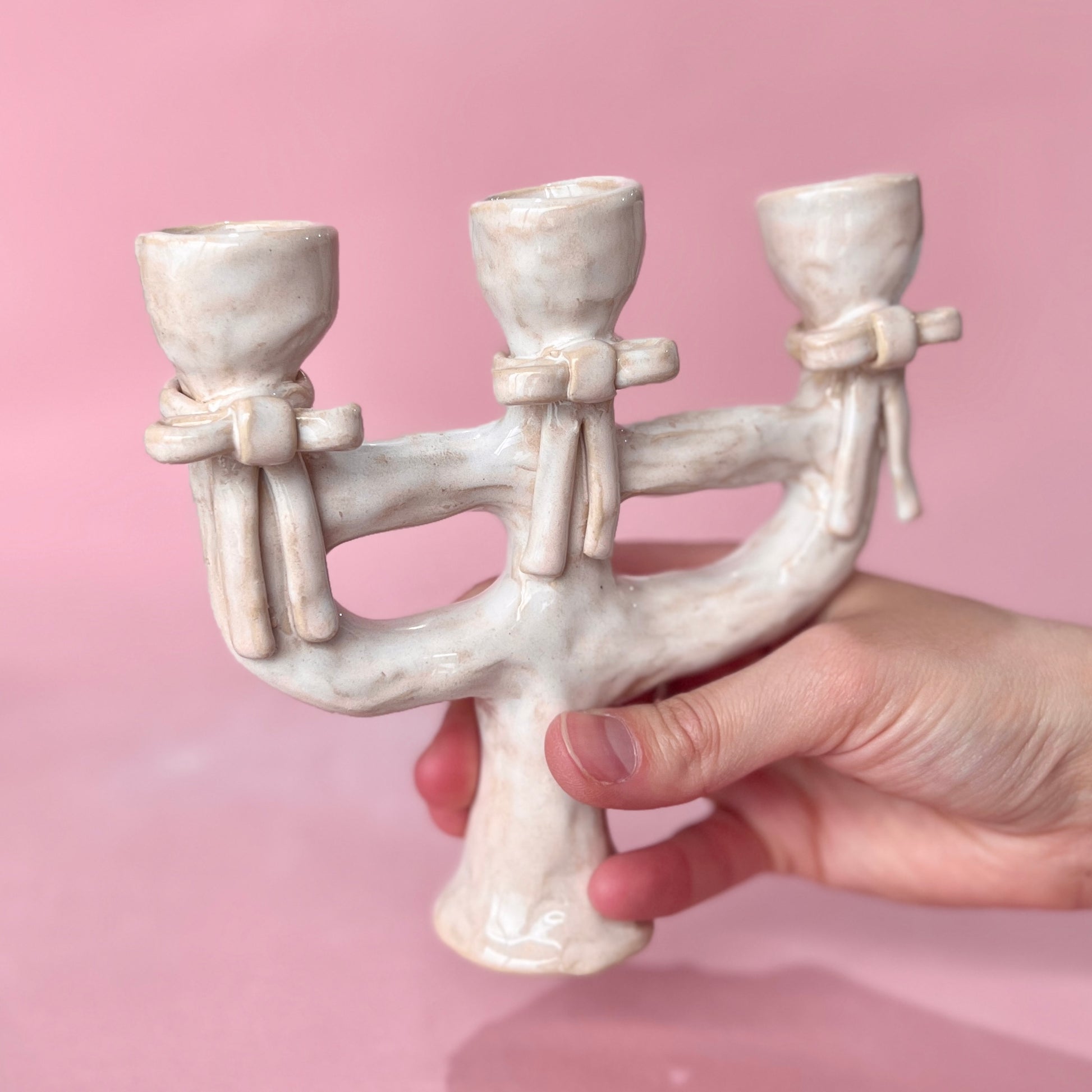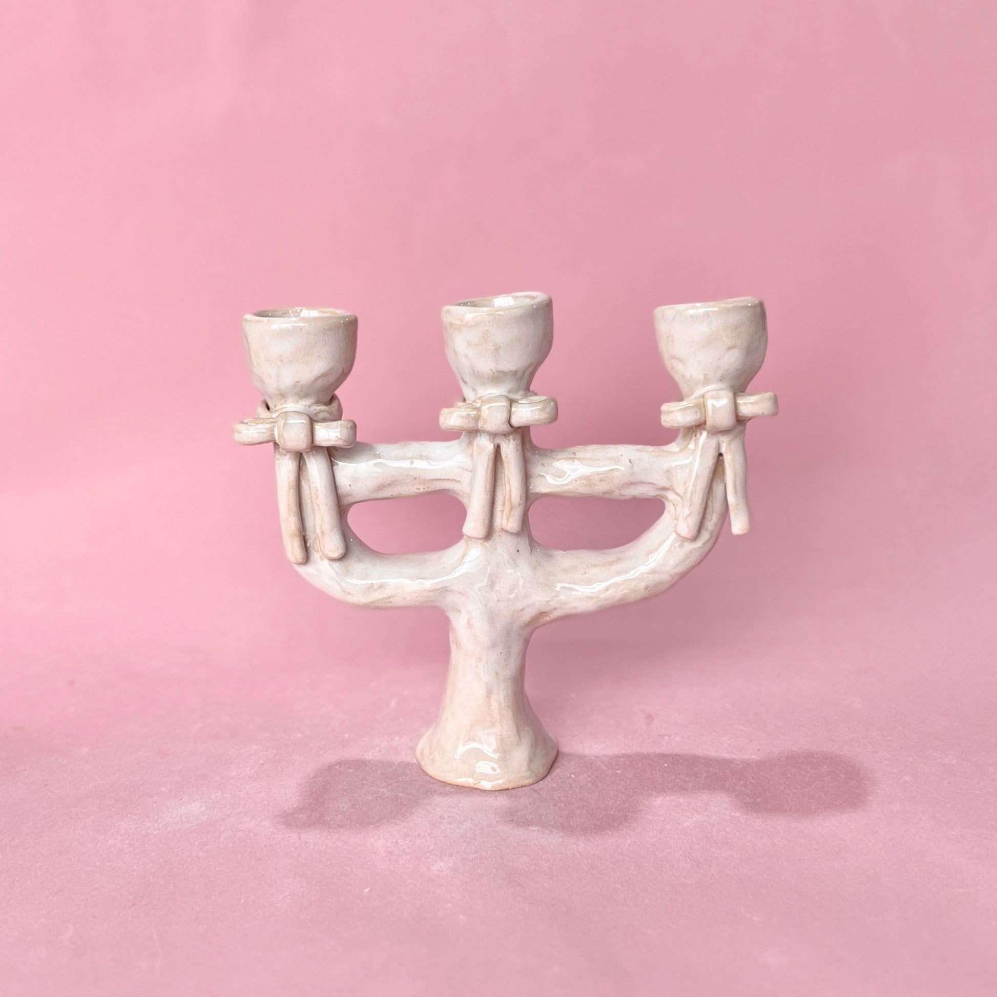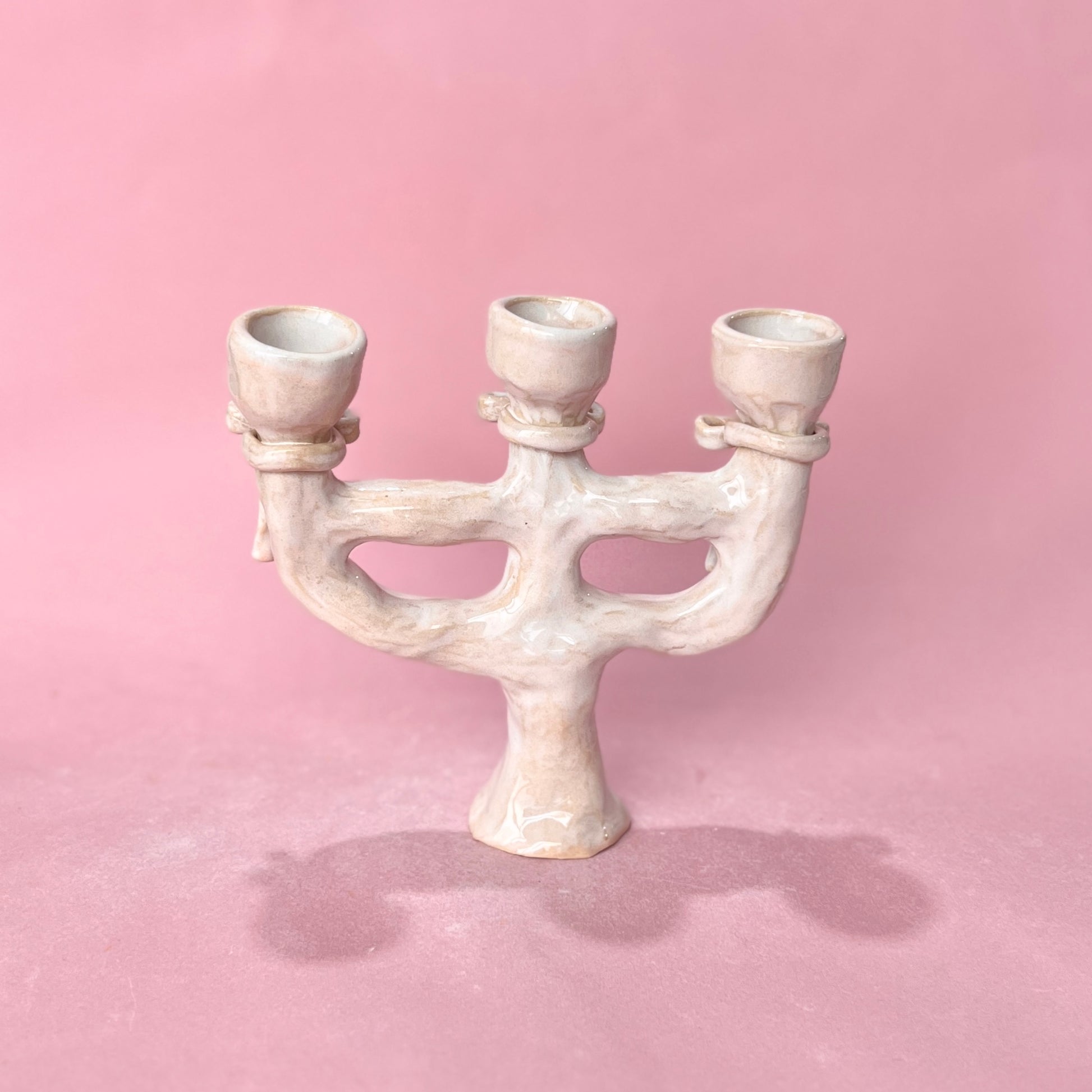 This piece has some small hairline cracks inside where the candles sit - this does not effect functionality of the piece