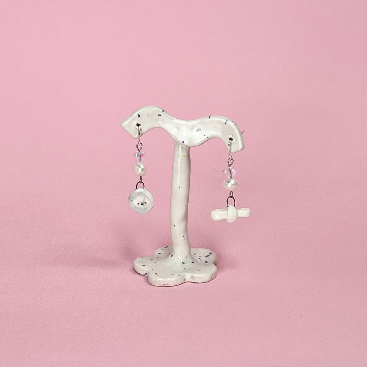 Freshwater pearls and glass beads finished with sterling silver earring hooks and necklace clasps.