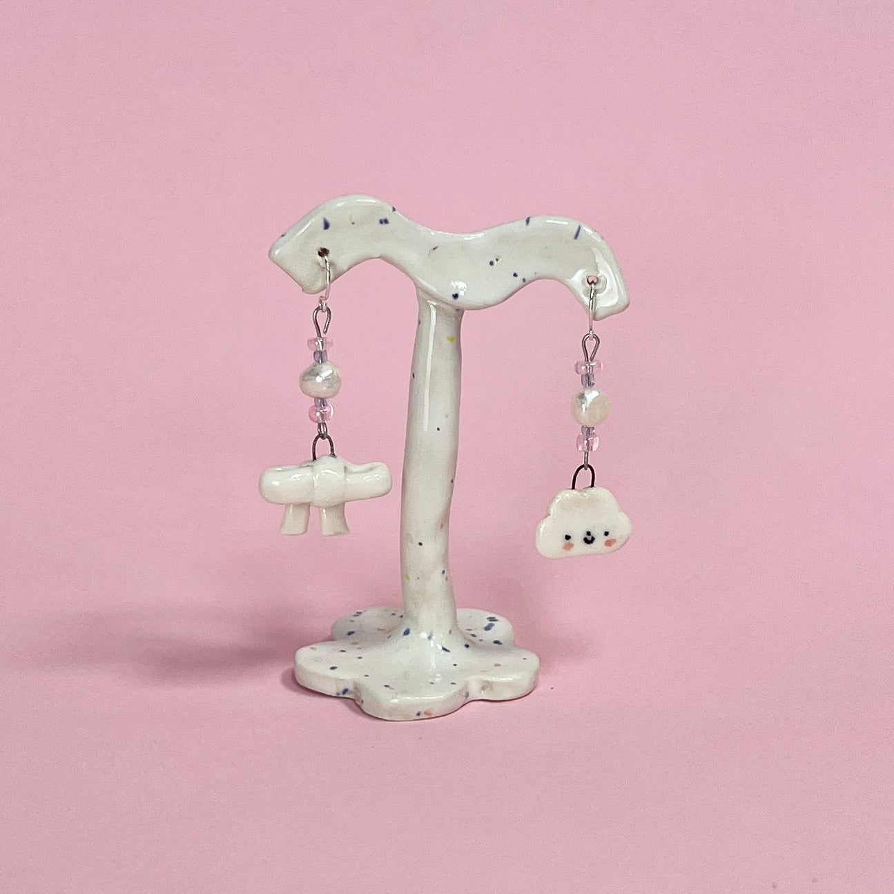 Cloud and White Bow Earrings