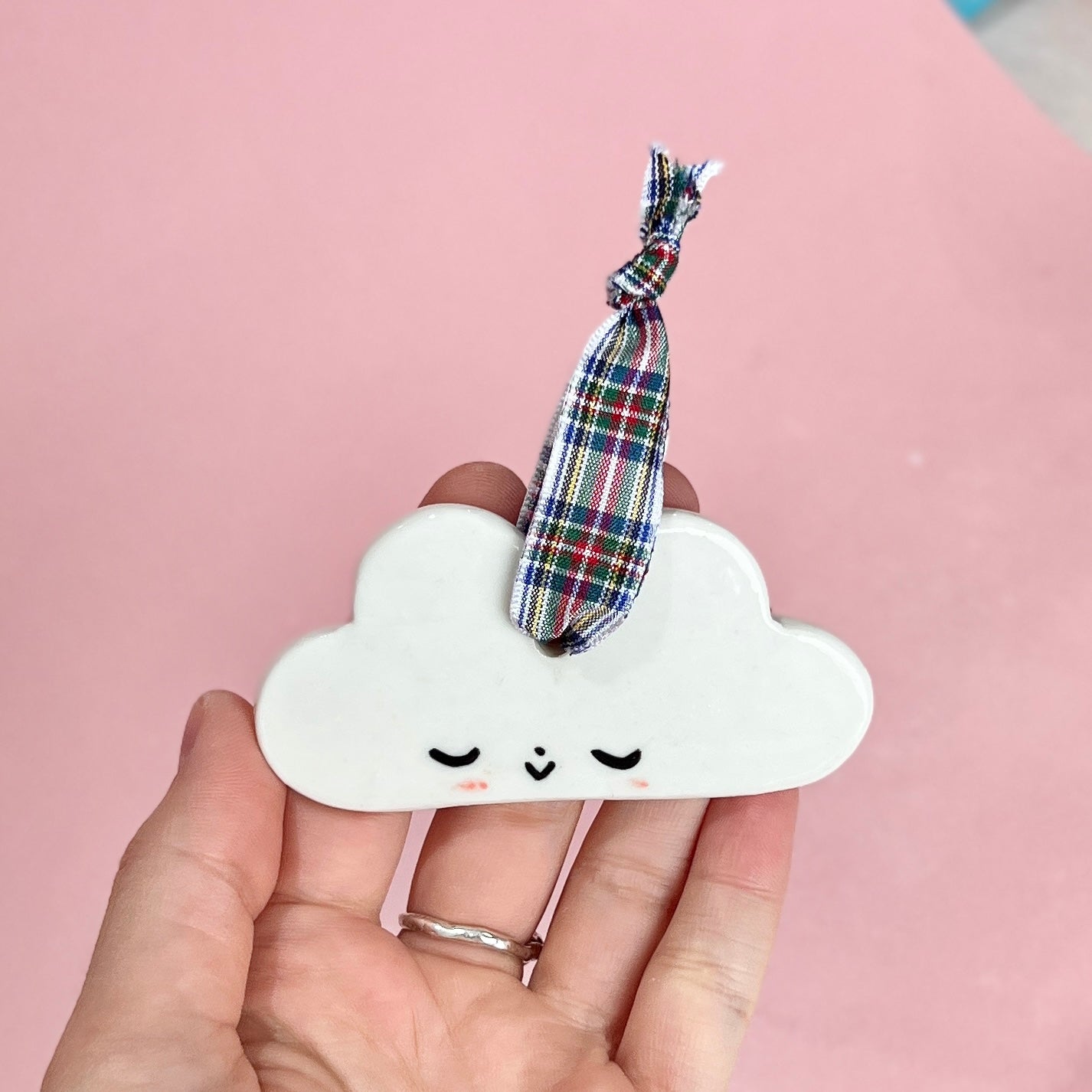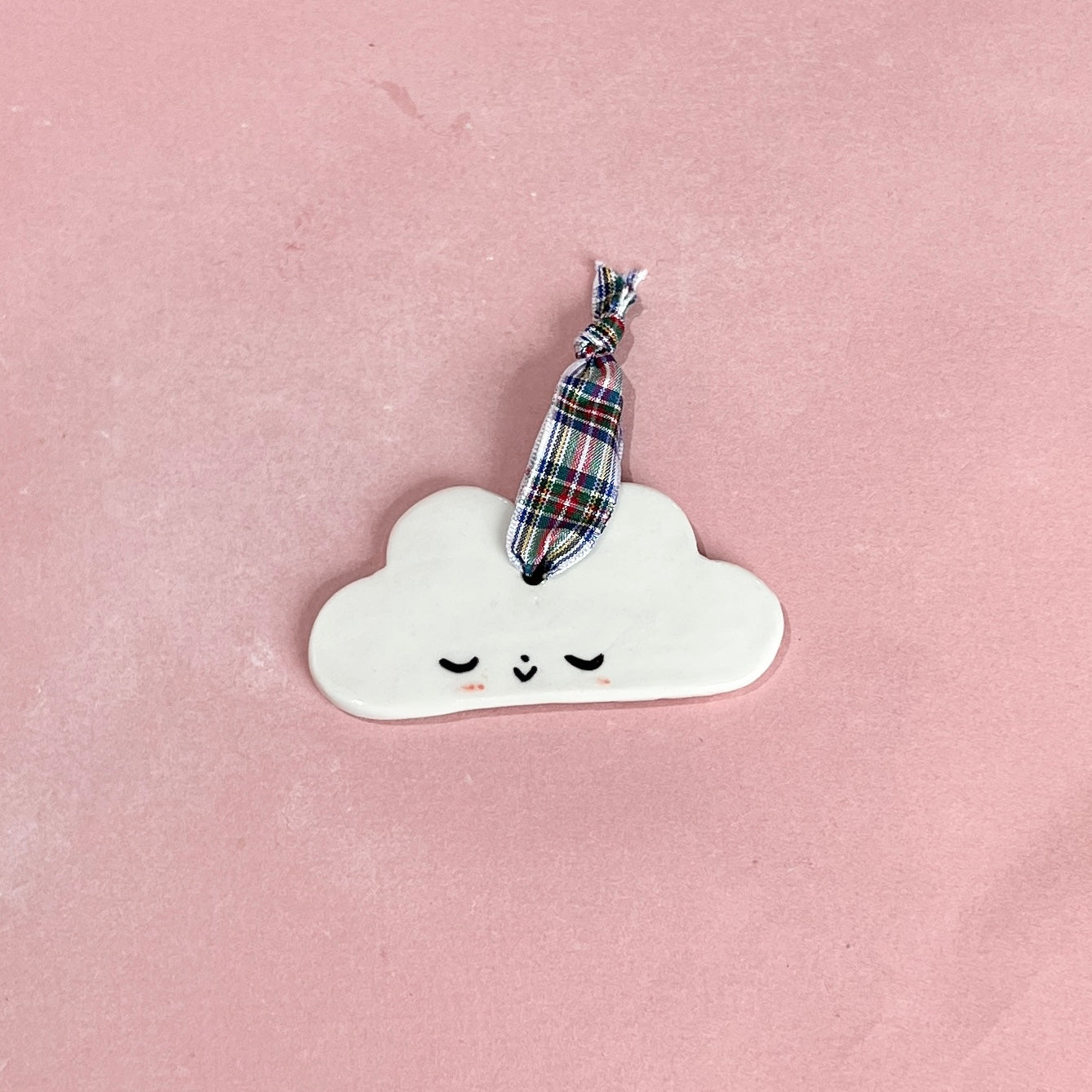 Cloud Ornament Gingham Ribbon
