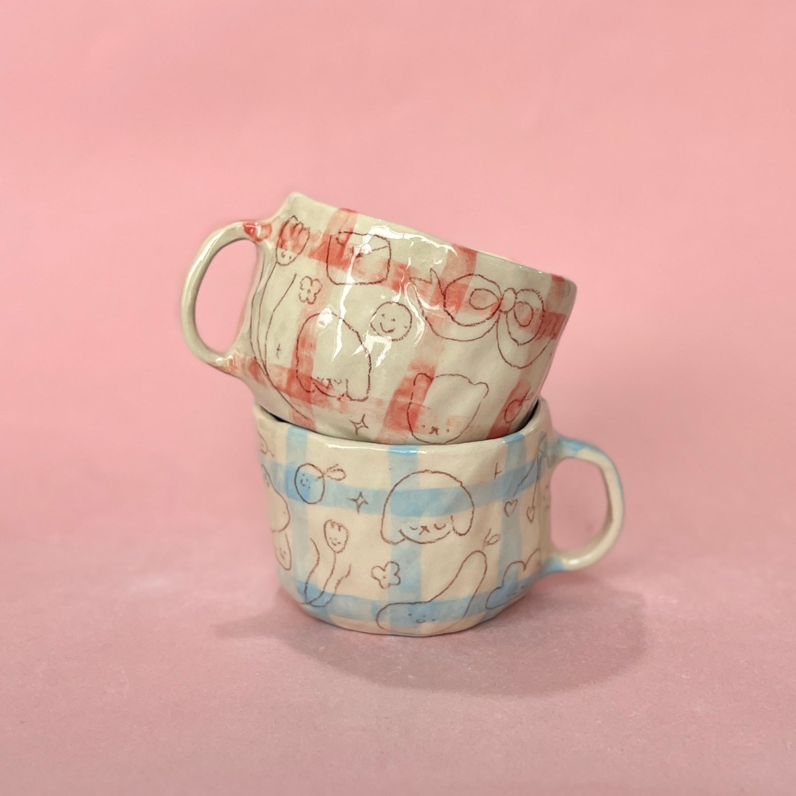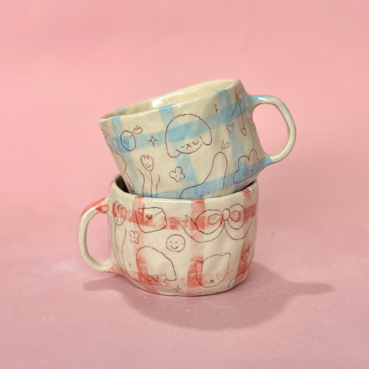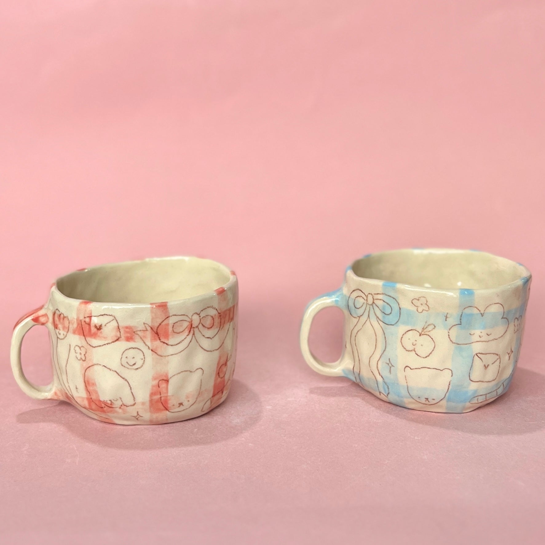 Gingham Scribble Mugs