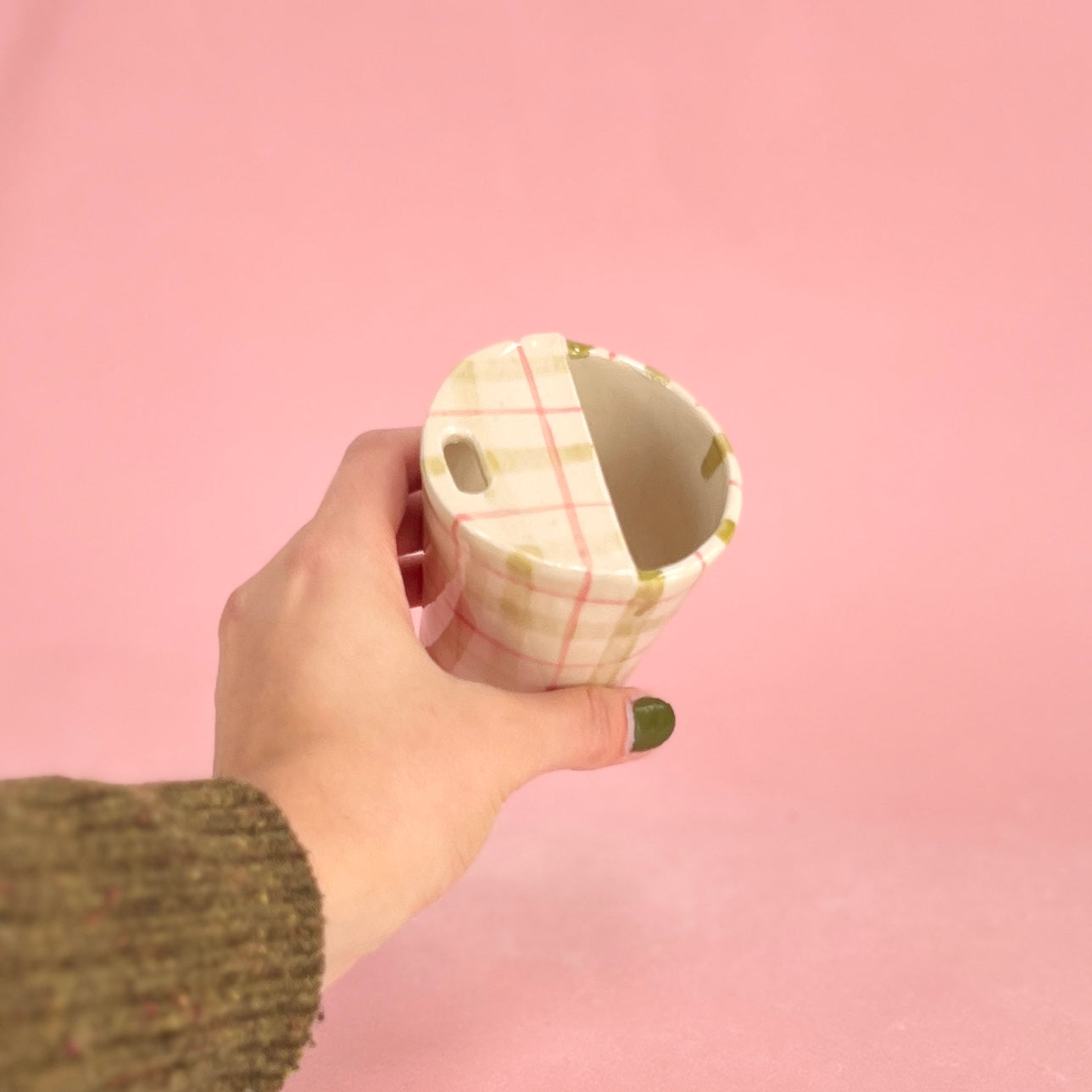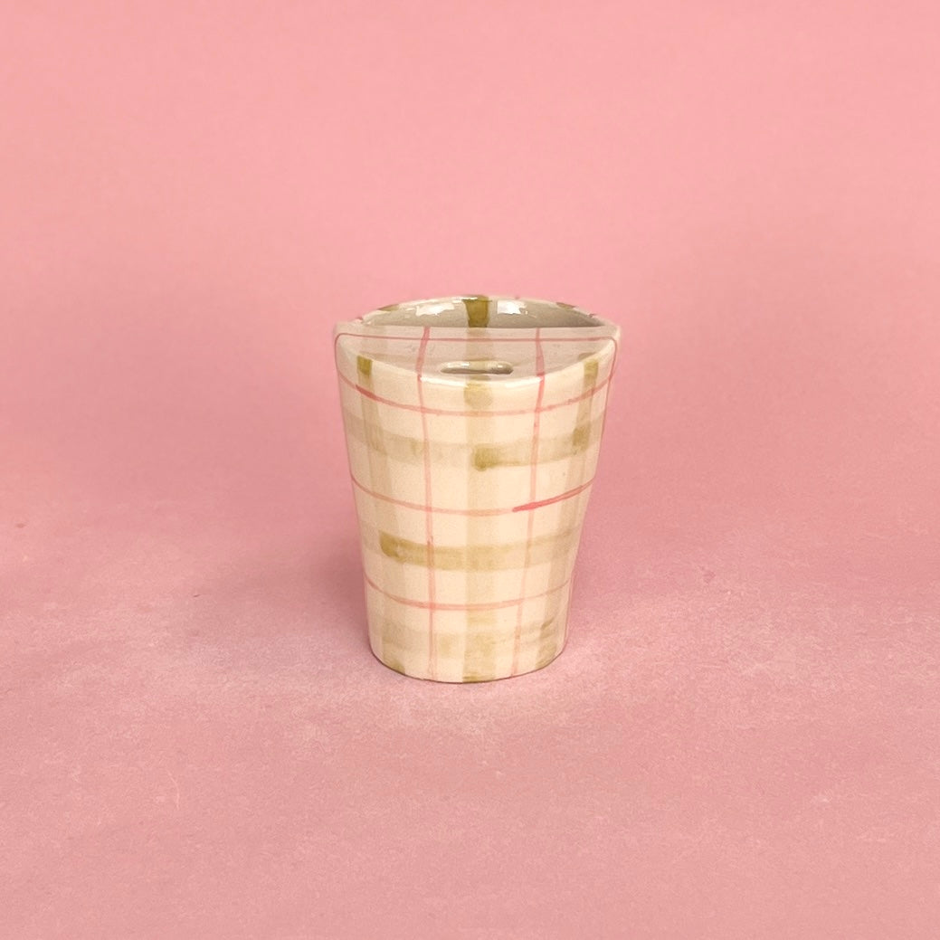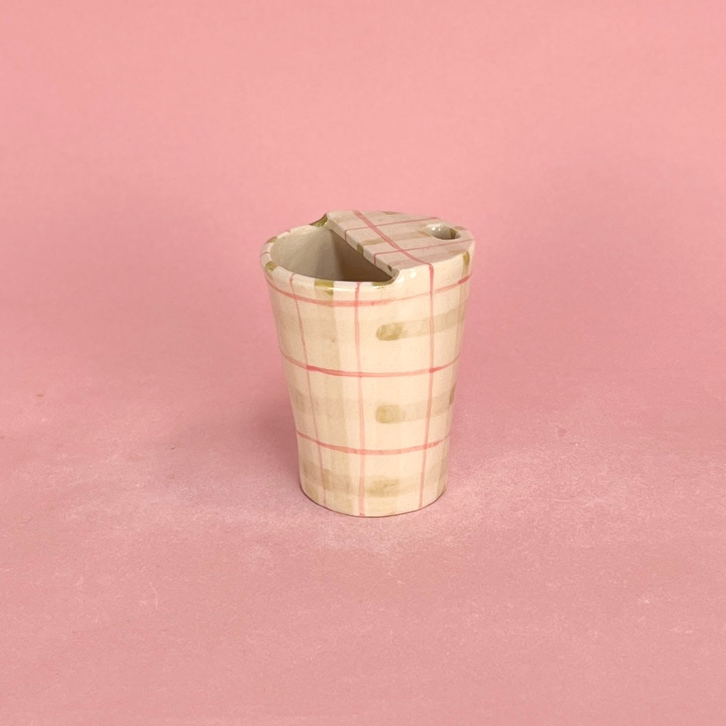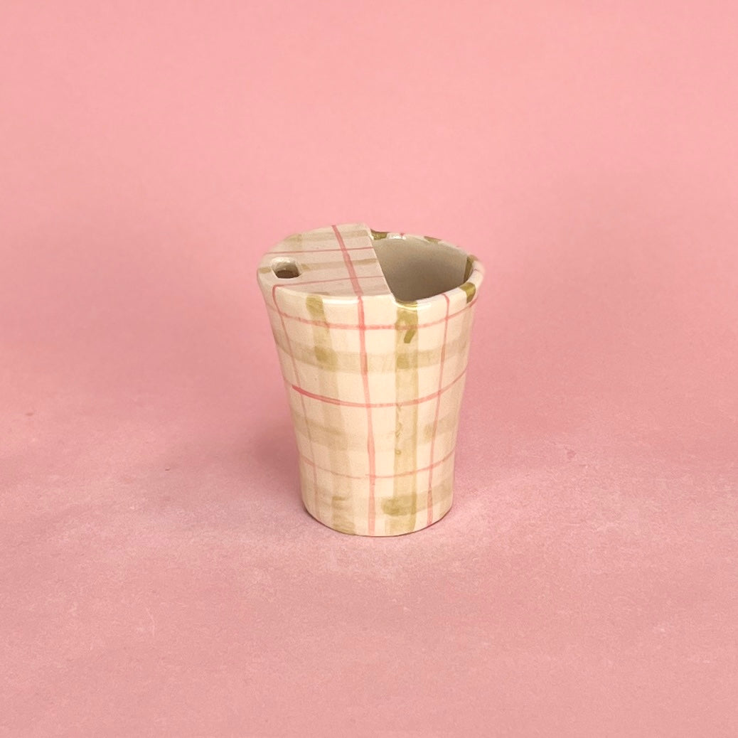Green and Pink Gingham Travel Mug