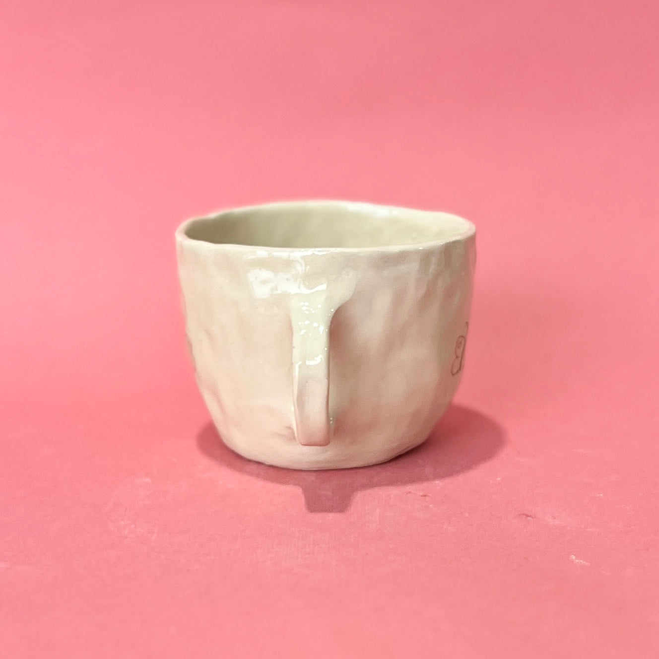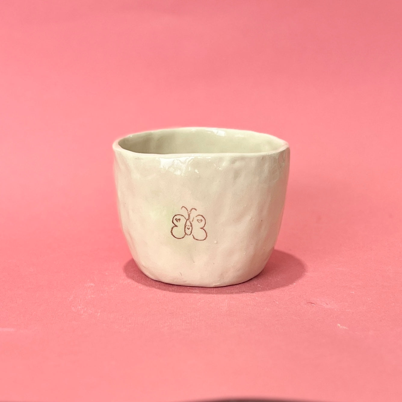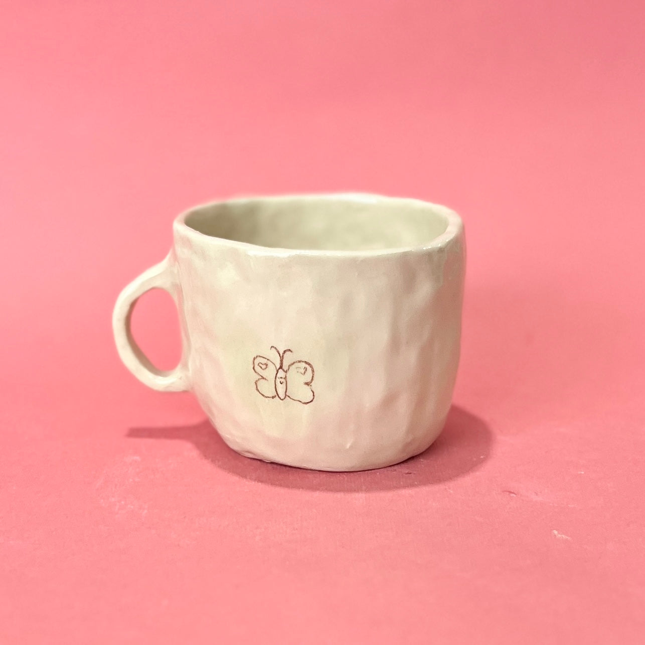 The airbrushing on this mug ended up way paler than I wanted! It's a super pale green spot around the butterfly. Fully functional otherwise