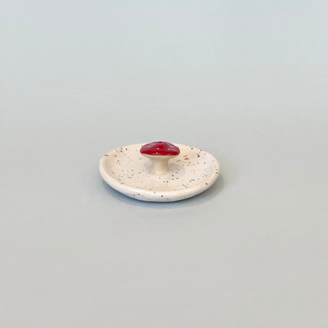Mushroom Round Incense Holder White Speckle