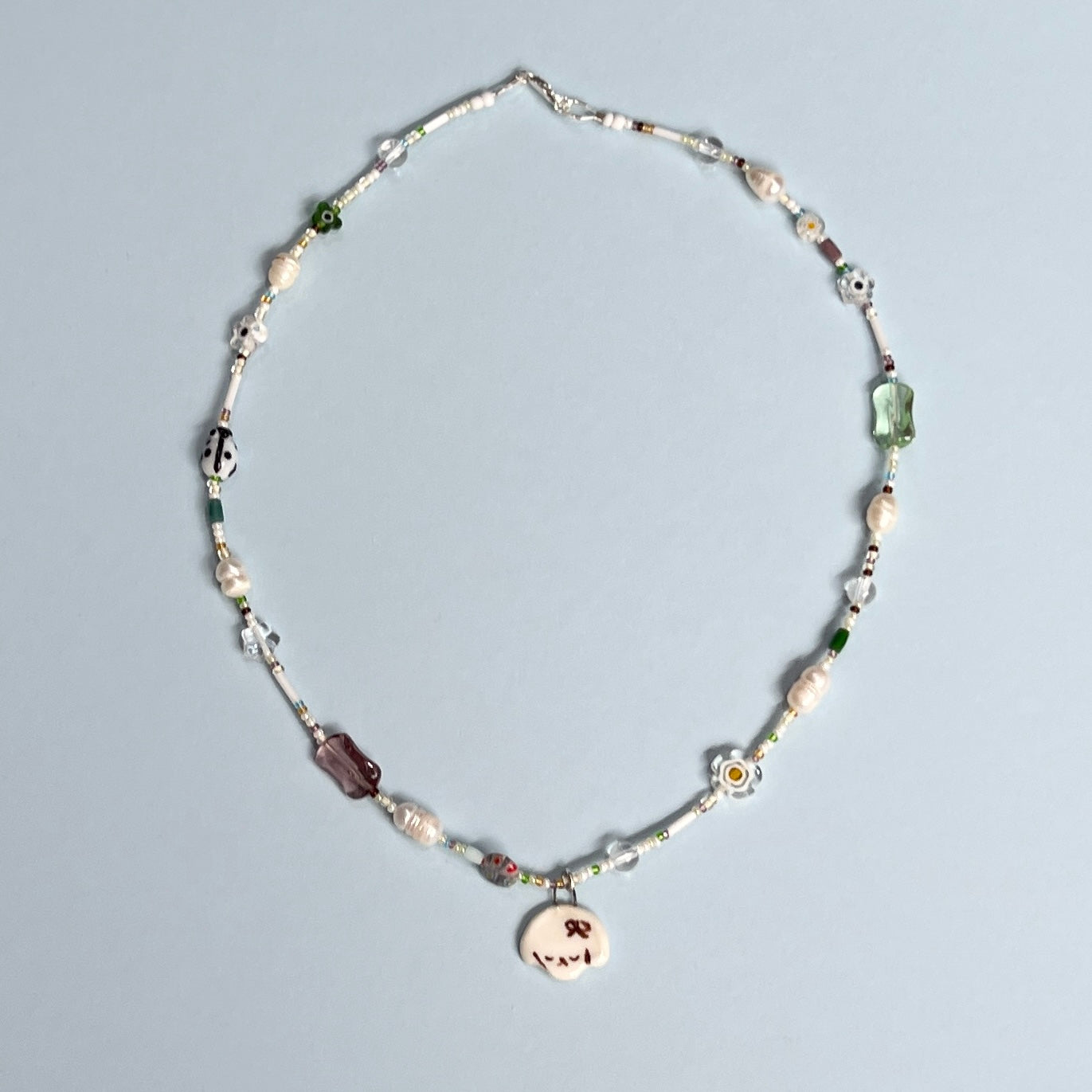 Freshwater pearls and glass beads finished with sterling silver necklace clasps and findings, strung on nylon coated sterling silver wire