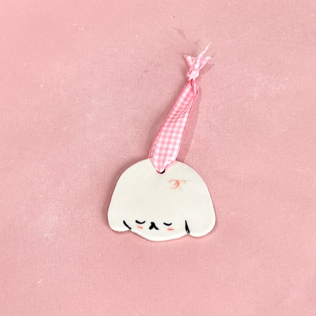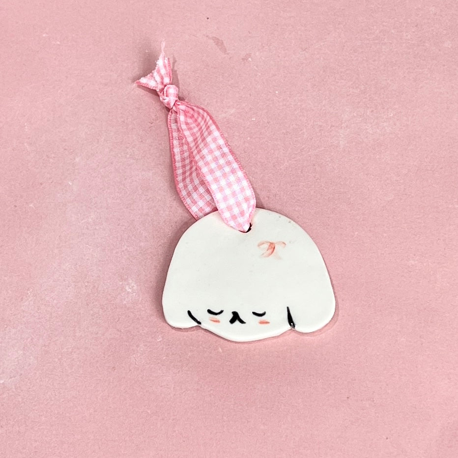 Puppy Ornament Pink Gingham Ribbon