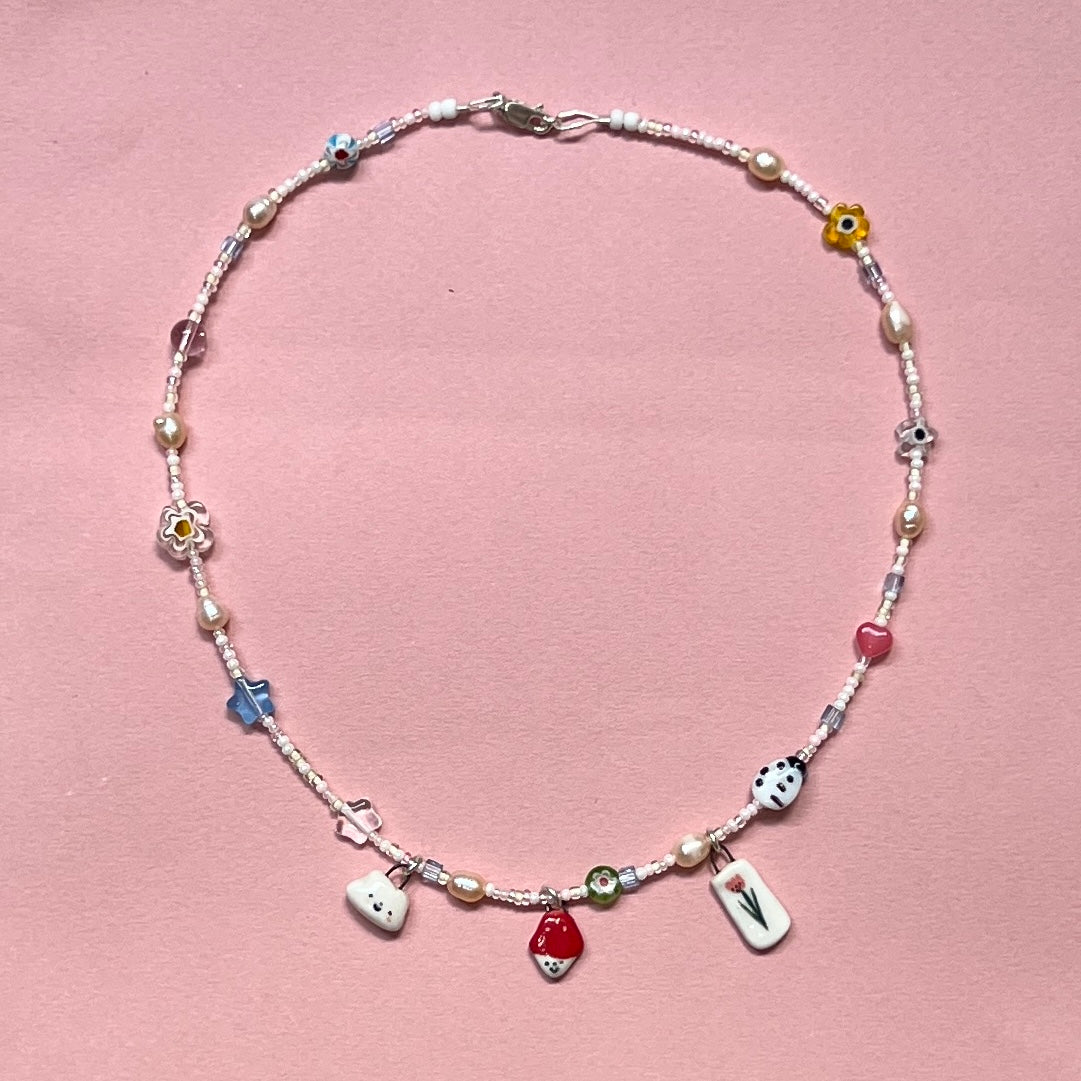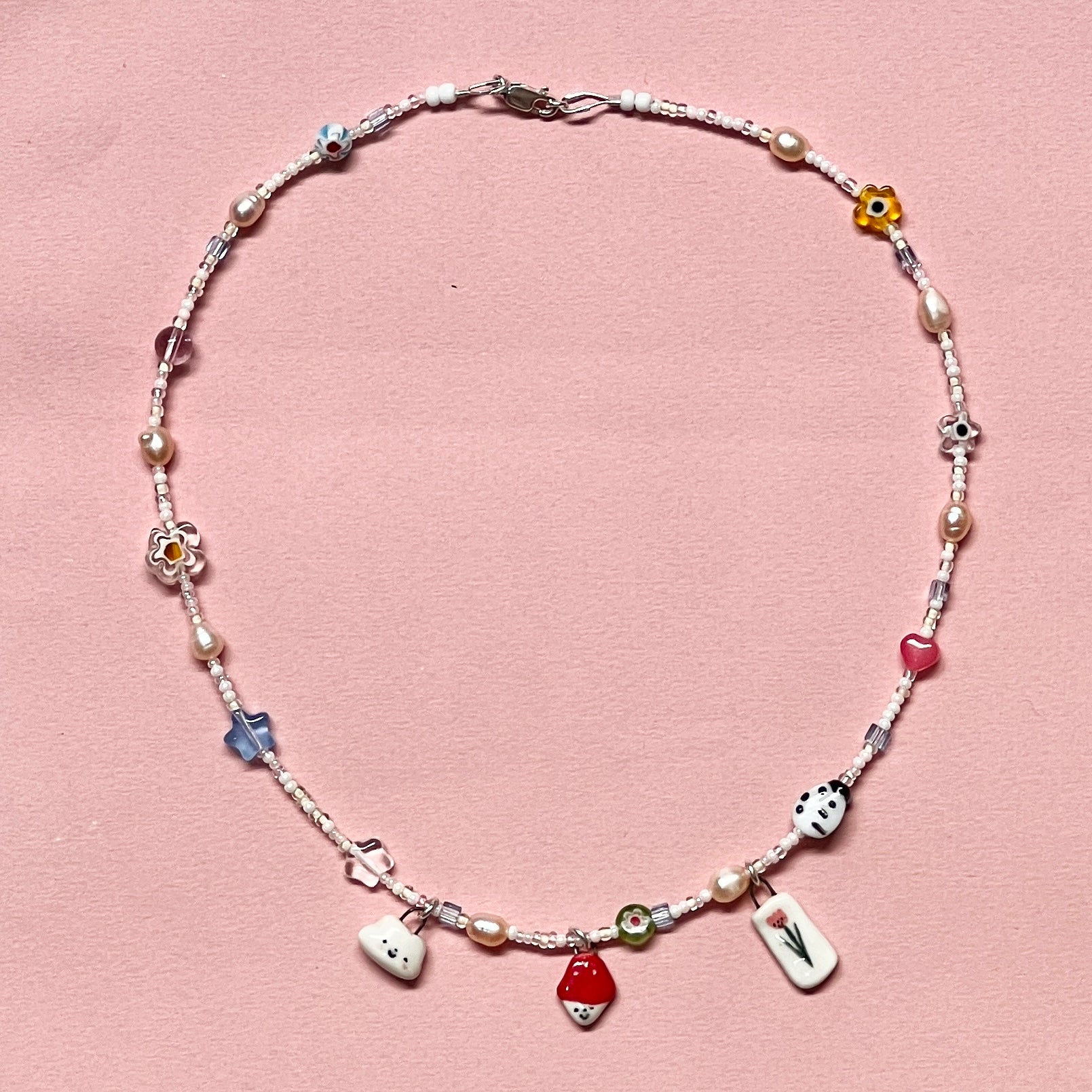 Freshwater pearls and glass beads finished with sterling silver necklace clasps and findings, strung on nylon coated sterling silver wire