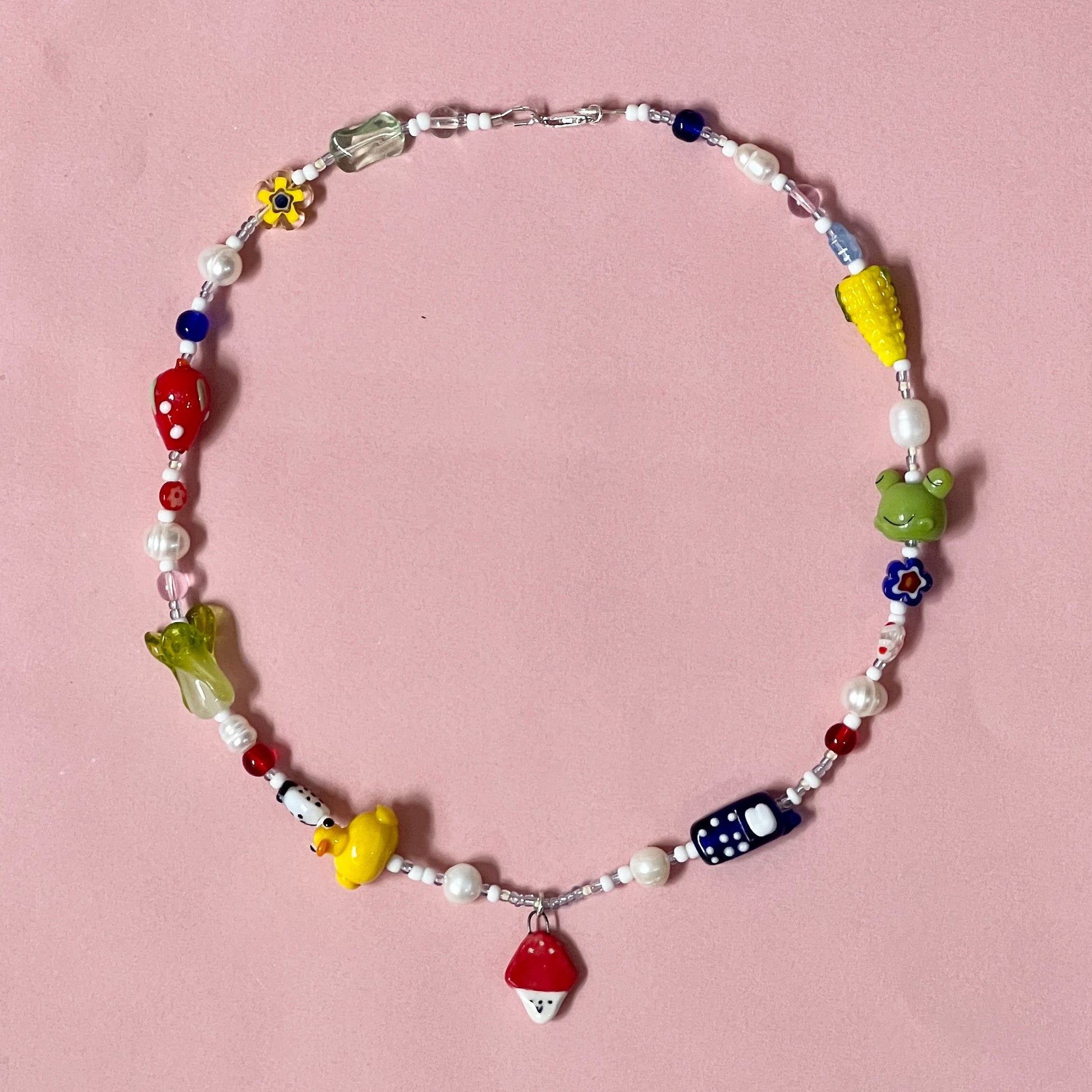 Freshwater pearls and glass beads finished with sterling silver necklace clasps and findings, strung on nylon coated sterling silver wire