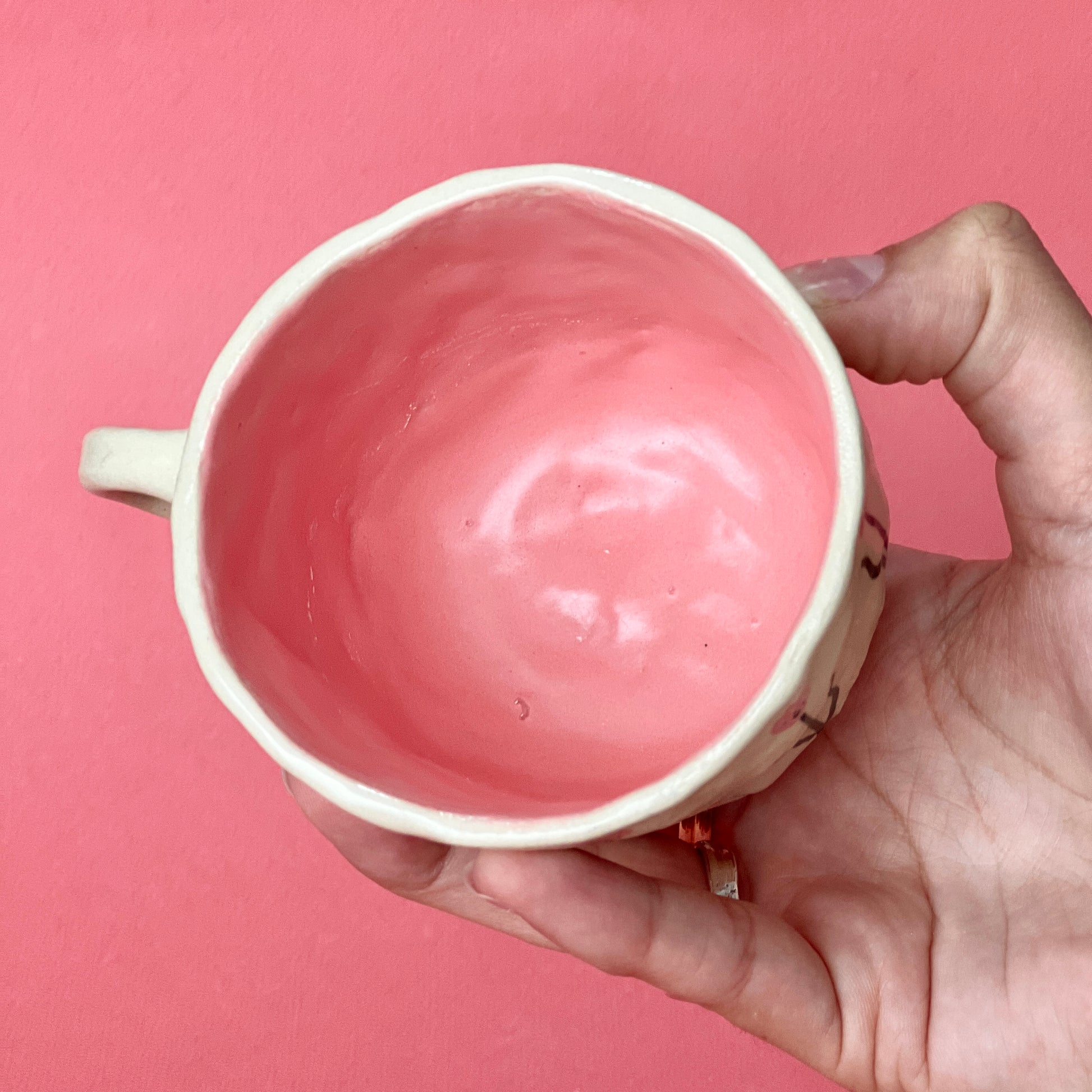 Weird glaze lumps made some imperfections in the bottom of this mug - I'd say it's probably technically not food safe even though the defect is pretty minor